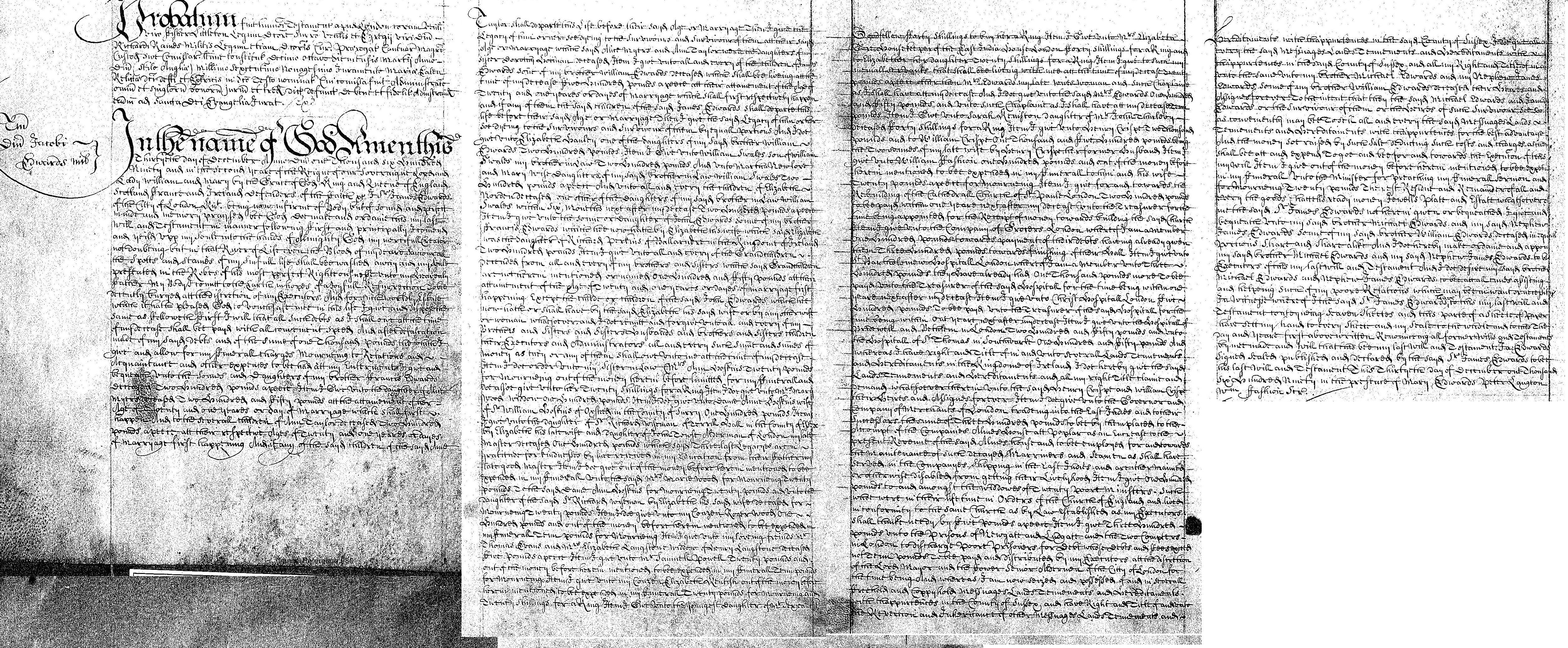 In the transcript I have used — to denote a word I was not able to read and ? at the end of words I was unsure of or words that are incomplete. I have tried to use capital letters where they are used in the document and retain the spelling in the original document. As you can see document contains no punctuation and so, for ease of reading, I have separated each section into a new paragraph. I have not included the Probatum section at the beginning which is in latin.